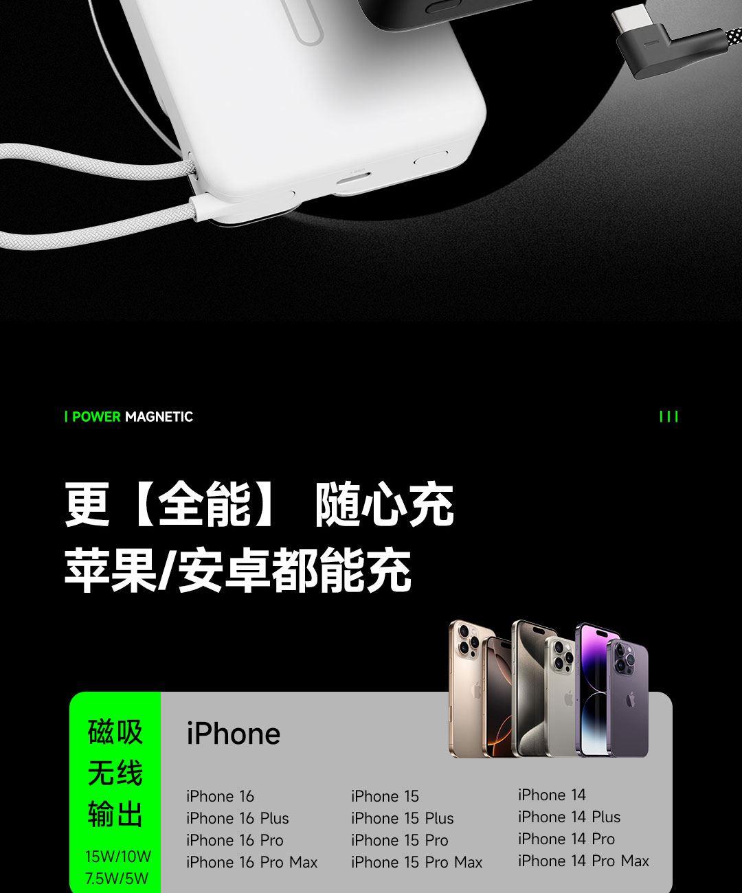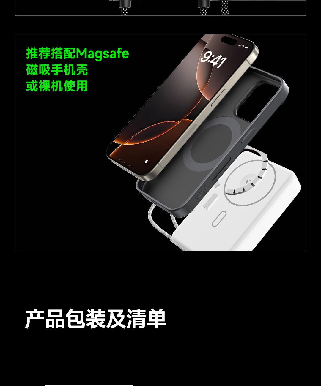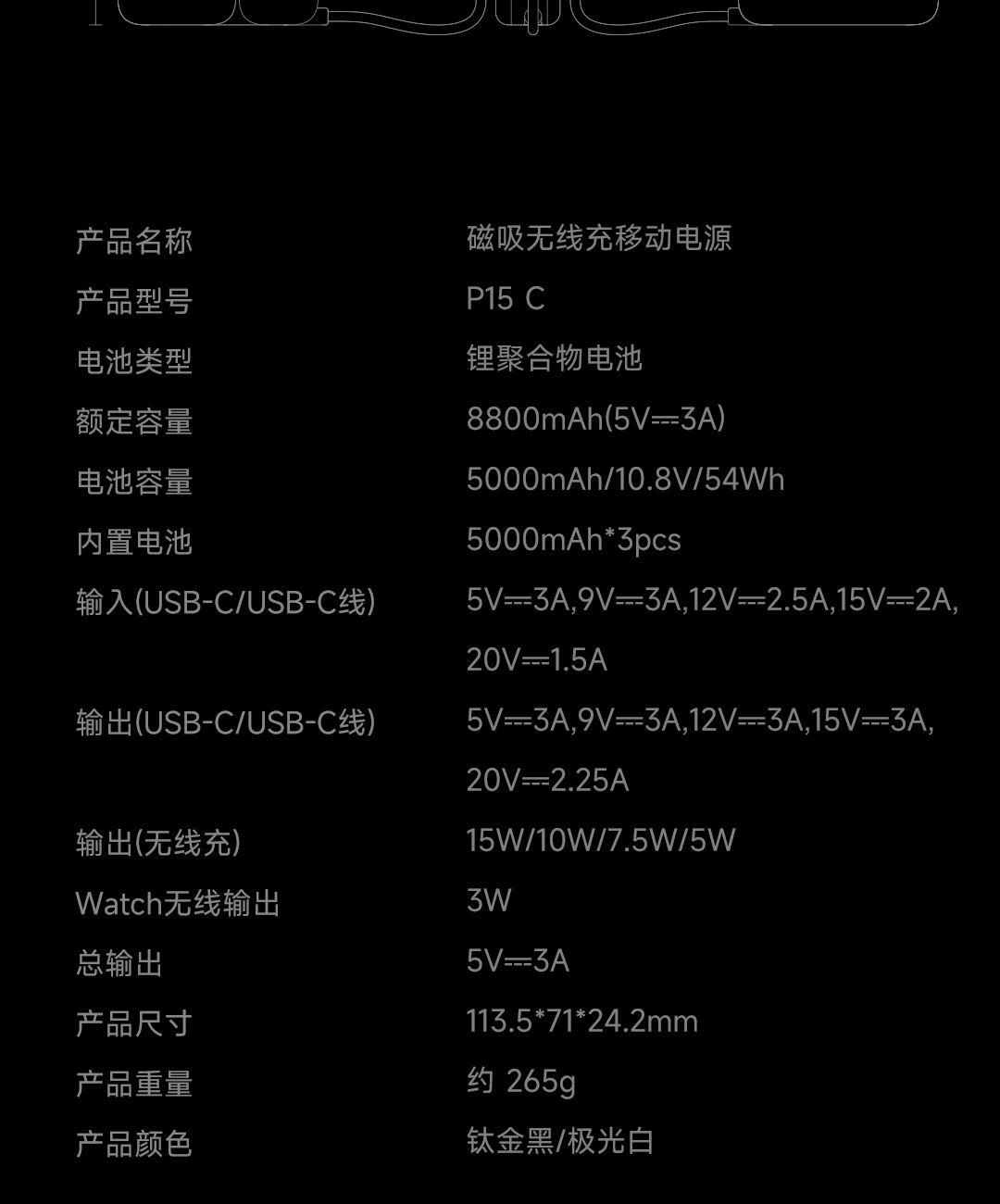 無(wú)線充輸出功率可達(dá)15W,磁吸無(wú)線充模式兼容iWatch手表系列充電,大大提高了無(wú)線充電的體驗(yàn)感