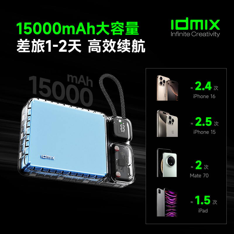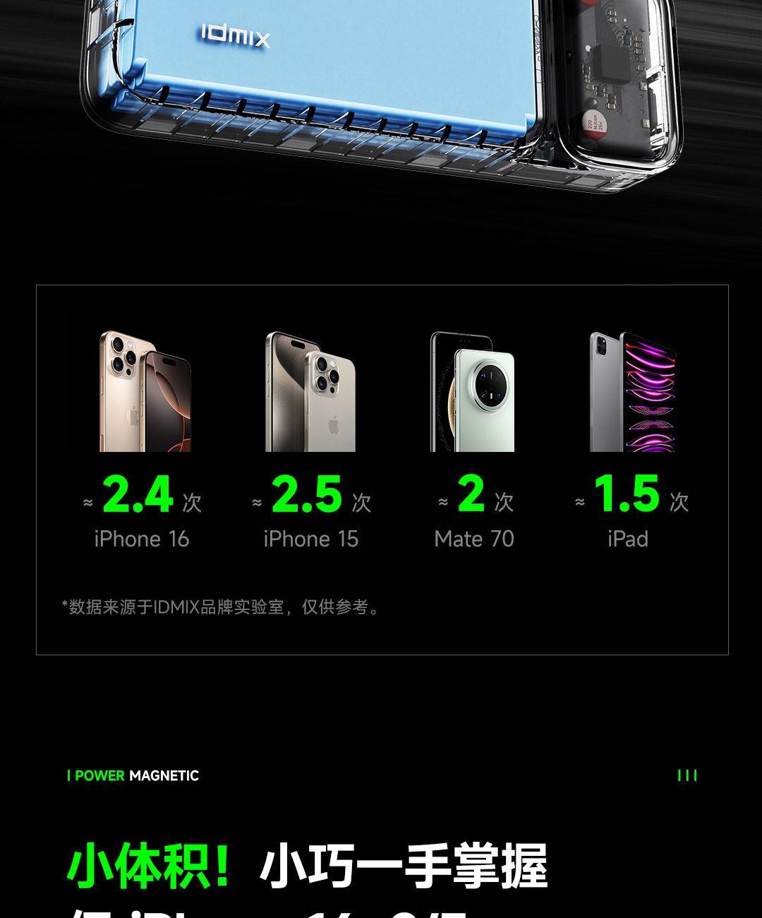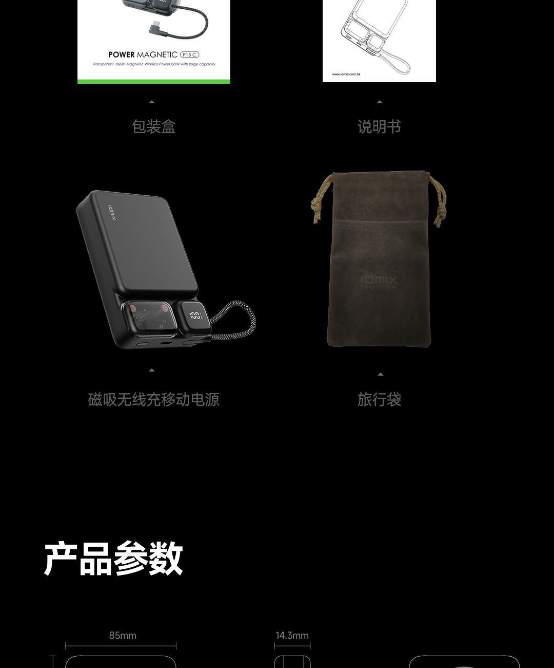 IDMIX磁吸無(wú)線充移動(dòng)電源P15C