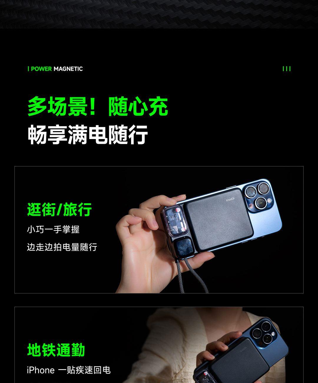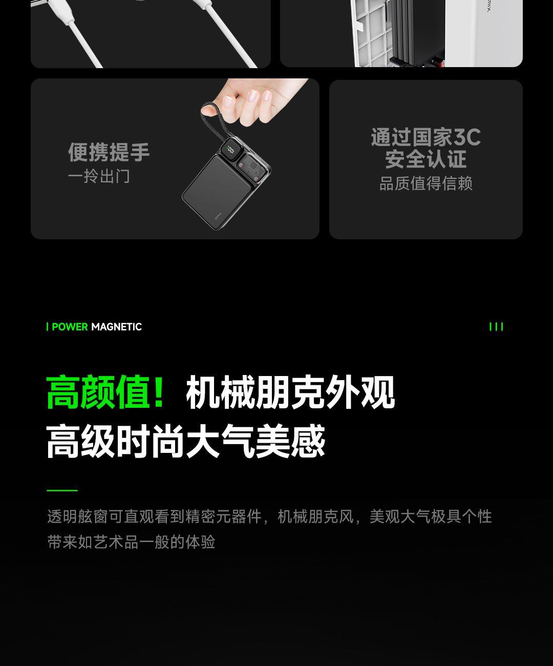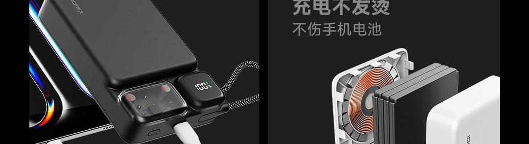 透明賽博機(jī)甲風(fēng)外觀,內(nèi)部精密元器件和充電情況一目了然,展現(xiàn)工業(yè)美學(xué)和科技藝術(shù)感,潮酷吸睛,潮人出街必備