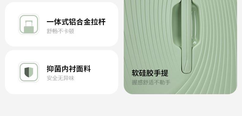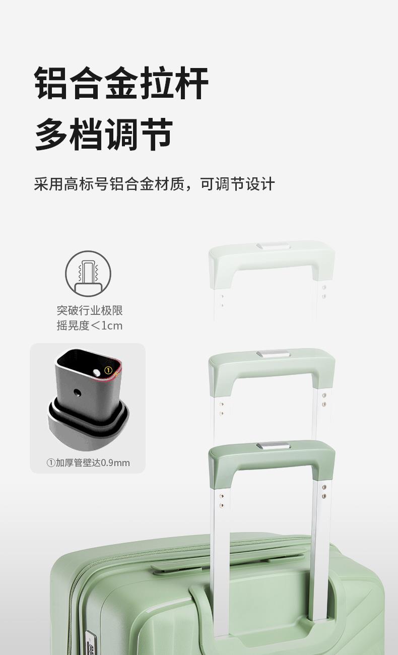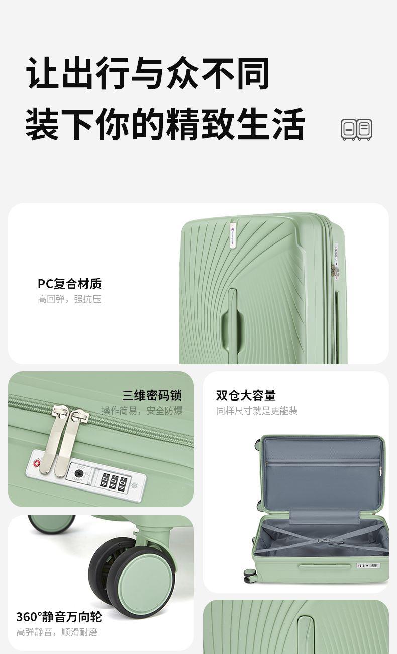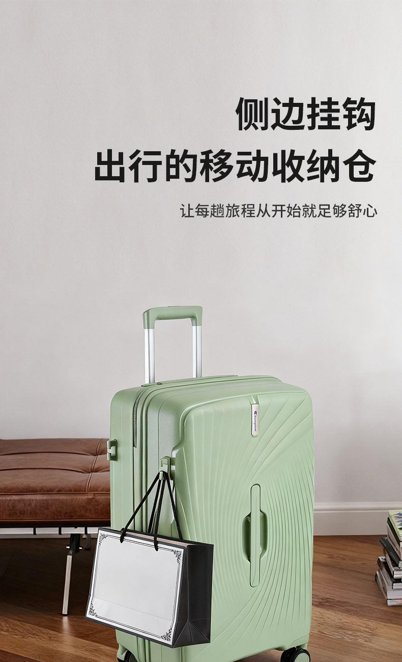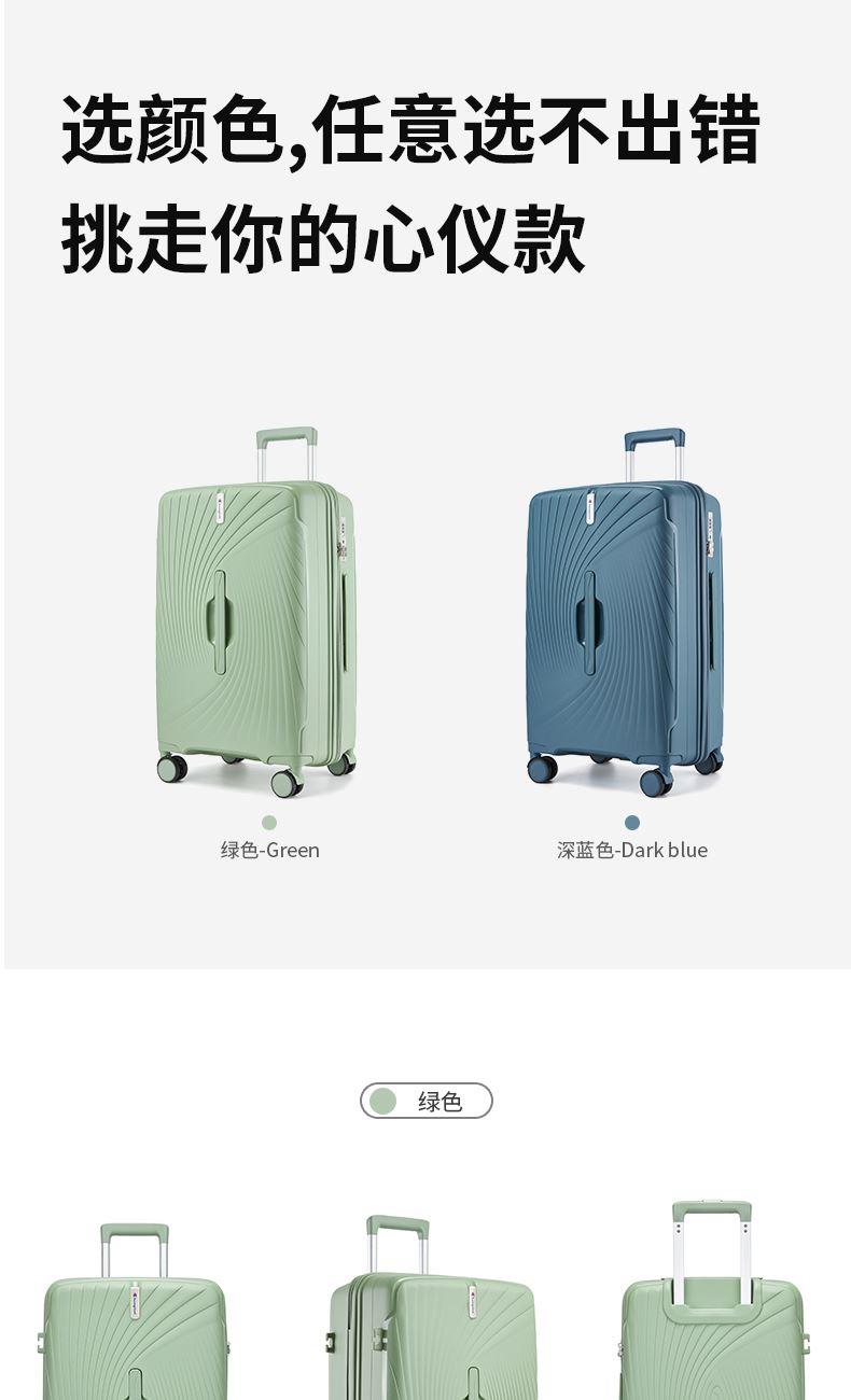 材質(zhì):面料:PP,里料:織物 尺寸:20寸 特點(diǎn):登機(jī)無憂,輕便靈活 顏色分類 :深藍(lán)色/綠色 外箱尺寸:340*250*560mm 吊牌價(jià):1060元 適用場景:短途出差、周末游 上市時(shí)間:2025年秋季 類別:行李箱 適用人群:男女通用