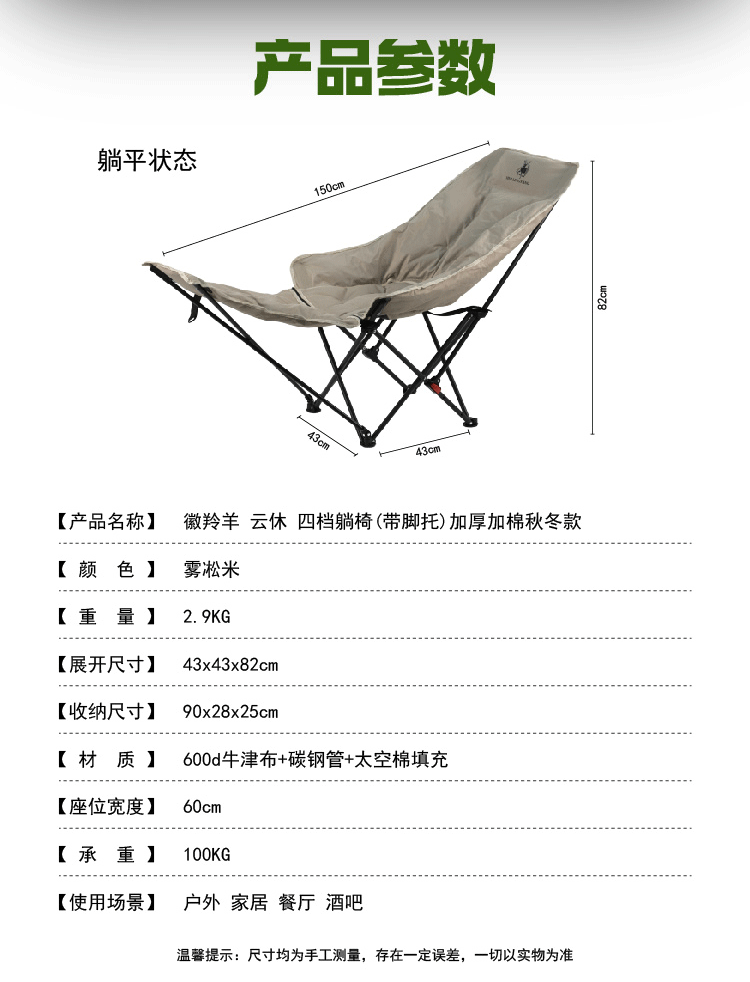 徽羚羊 云休四檔躺椅(帶腳托)加厚加棉秋冬款