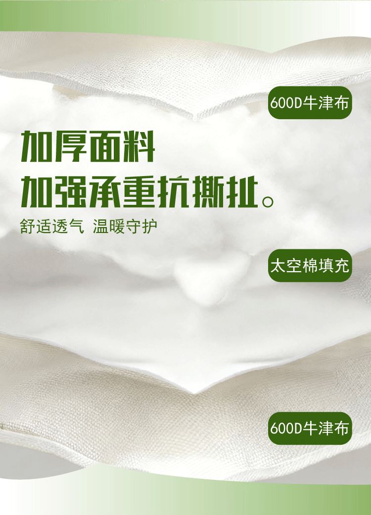 材質(zhì):600d牛津布、碳鋼管、太空棉填充