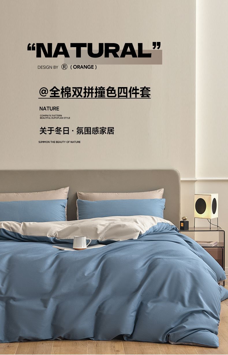 百麗安娜純色極簡(jiǎn)全棉四件套-藍(lán)灰