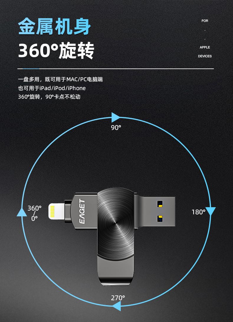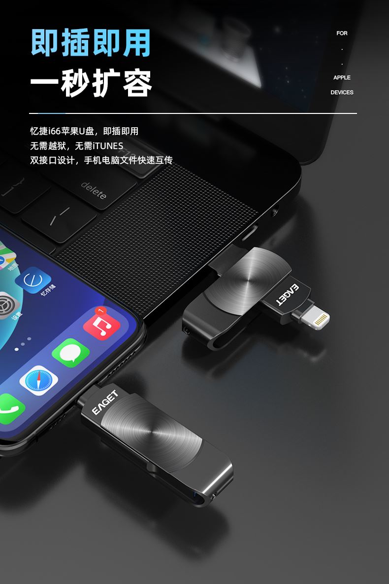 (EAGET)憶捷i66Plus蘋(píng)果U盤(pán)手機(jī)電腦兩用128G 禮品已成功加入PPT!