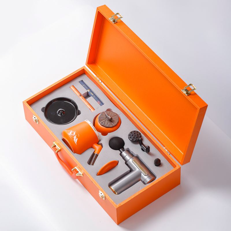 配 制: 1辦公杯1筋膜槍 1香盤 2條香 1茶葉罐 錦盒 規(guī)格: 辦公杯14.5*10.4cm 禮盒38.2*11cm 茶葉罐9.6*9cm 工藝:香道套裝,配香盤,2條線香。專業(yè)級(jí)筋膜槍,6檔變速,4種按摩頭,液晶觸屏,深度緩解肌肉酸脹。商務(wù)實(shí)用性禮品,上班族剛需產(chǎn)品。