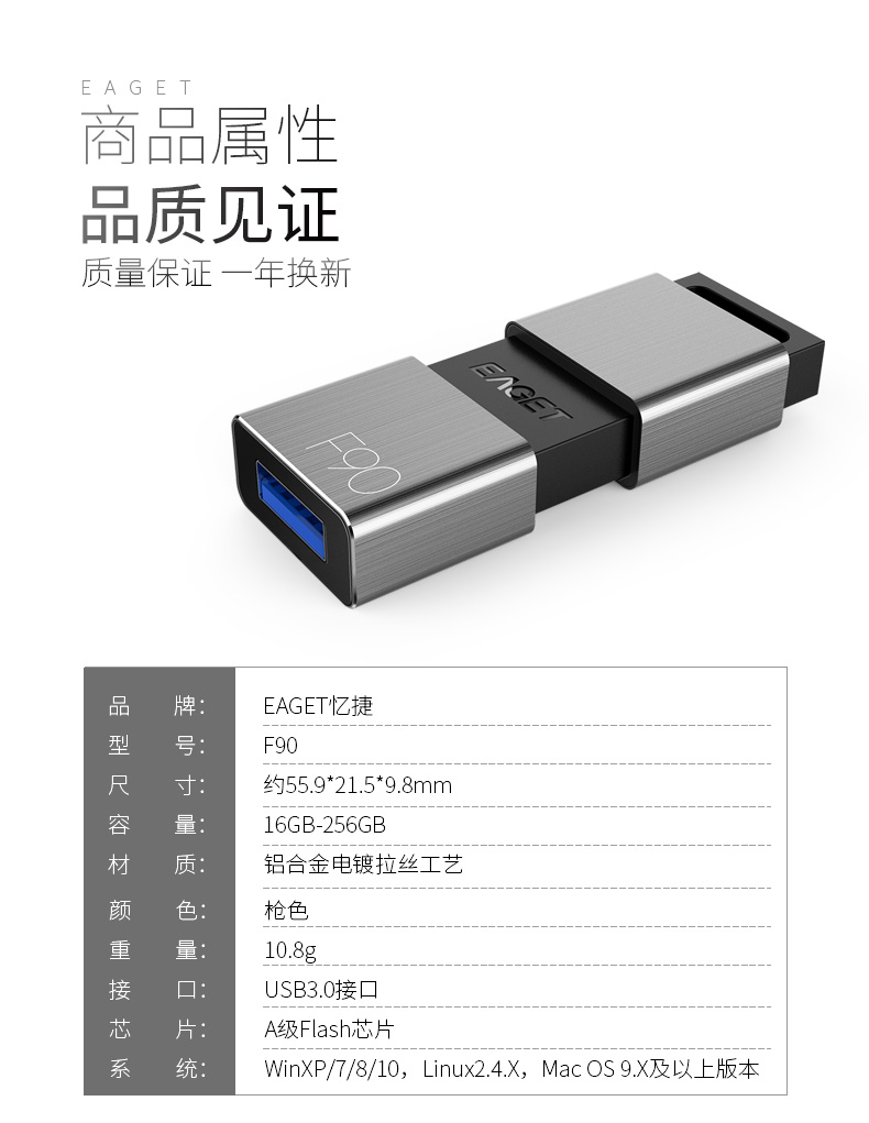 (EAGET)憶捷高速金屬推拉式車載商務(wù)優(yōu)盤F90-64G (EAGET)憶捷高速金屬推拉式車載商務(wù)優(yōu)盤F90-64G