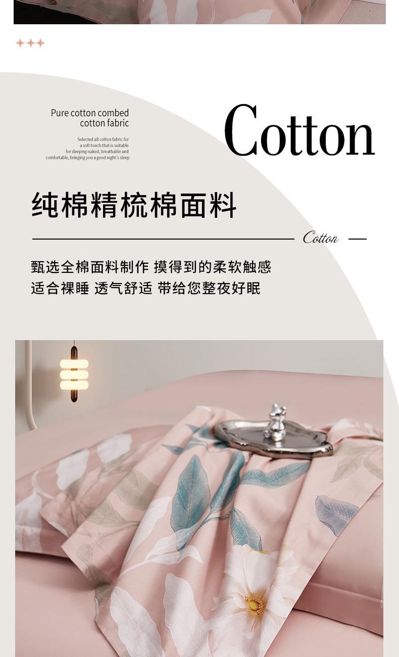 產(chǎn)品型號:S02025002 被 套:200*230cm 床 單:230*245cm 枕 套:48*74cm*2 面 料:棉 裝 箱 數(shù):7 純棉精梳棉面料,活性印染,手感細膩、親膚透氣; 花型設(shè)計為百合花,與玉色相搭配,寓意美好; 天地蓋禮盒包裝,自用送禮兩相宜