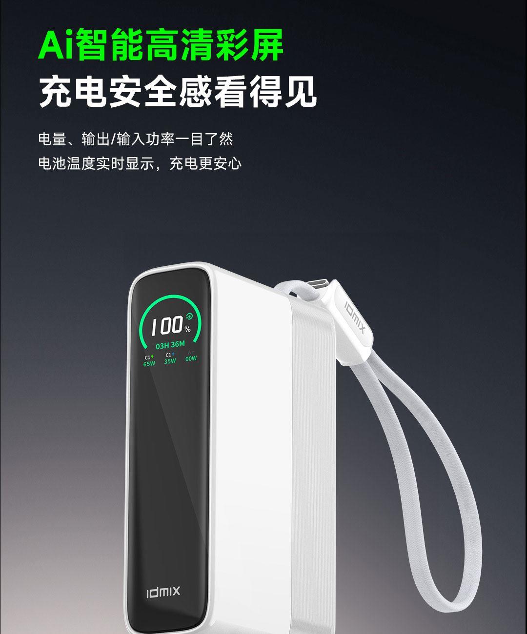 AI屏顯 電量、輸出/輸入功率,充電寶支持協(xié)議,前充電設(shè)備支持協(xié)議,電池溫度、電池循環(huán)次數(shù)、總輸入/輸出瓦時一目了然,可視化更安全。