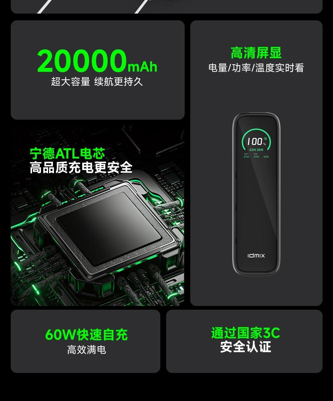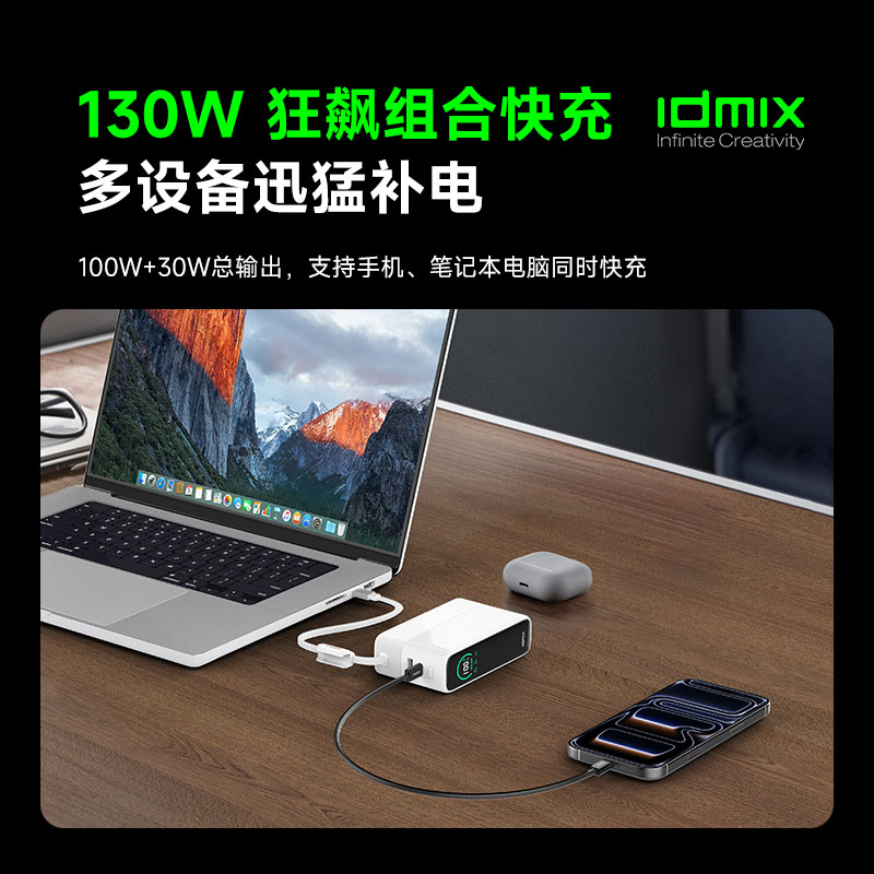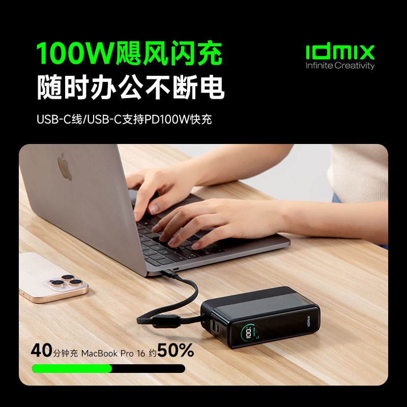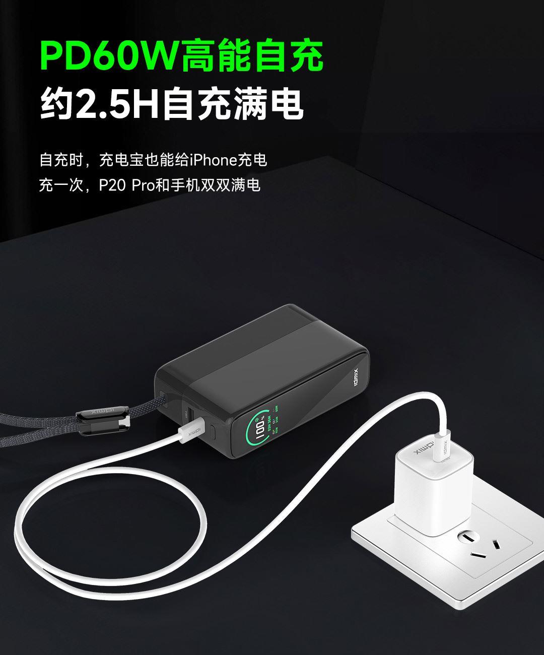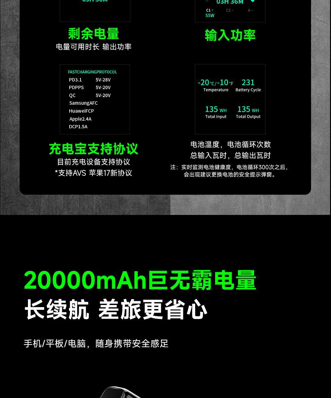 20000mAh大容量,一個搞定筆記本、平板電腦、手機,等設(shè)備充電,減負出行更輕松,40分鐘 充 MacBook Pro 16"約50%,高效辦公不斷電。