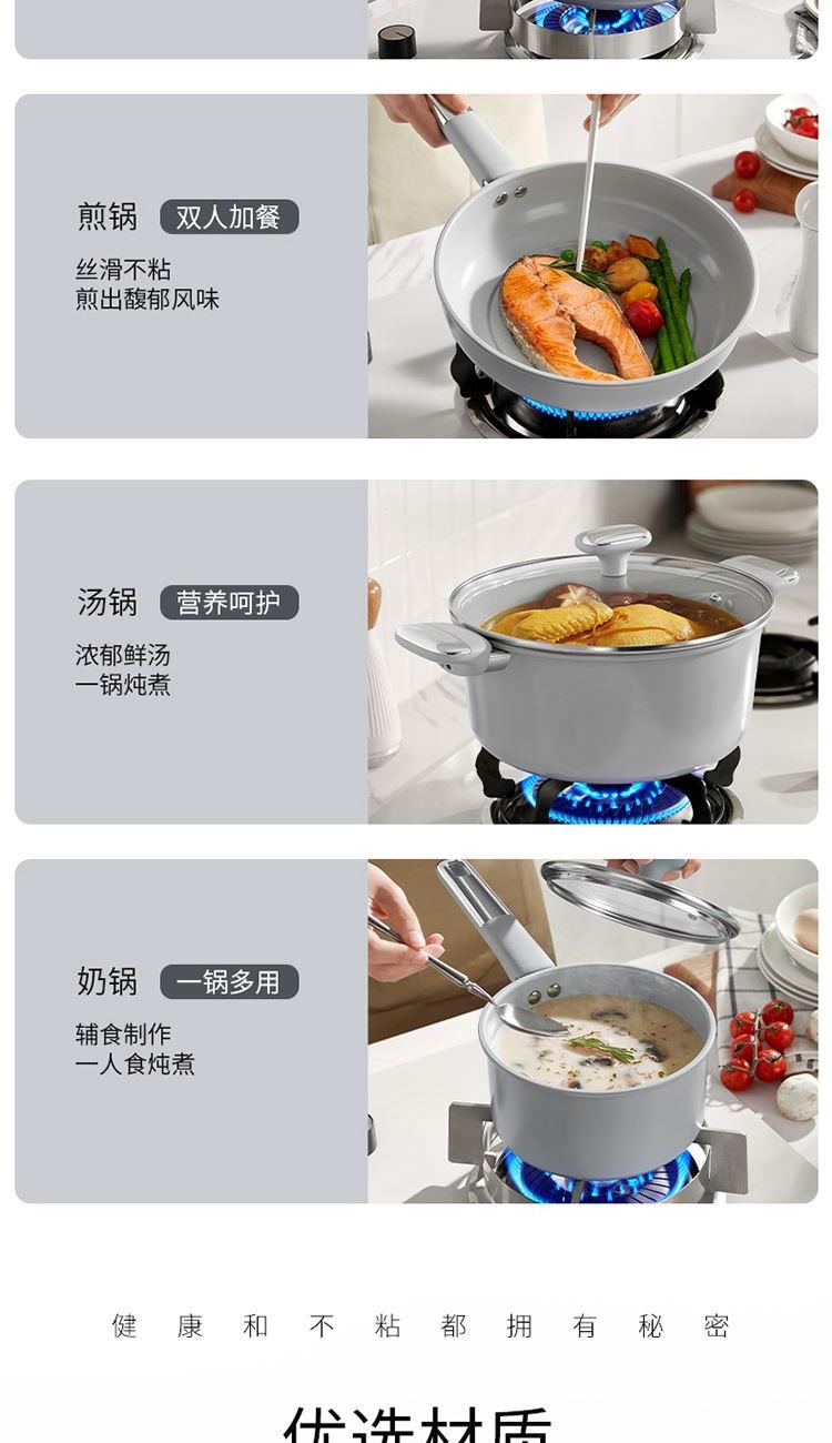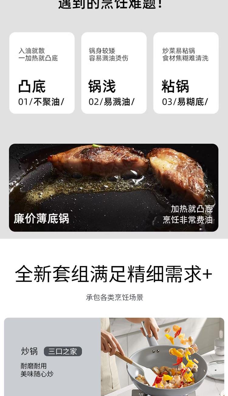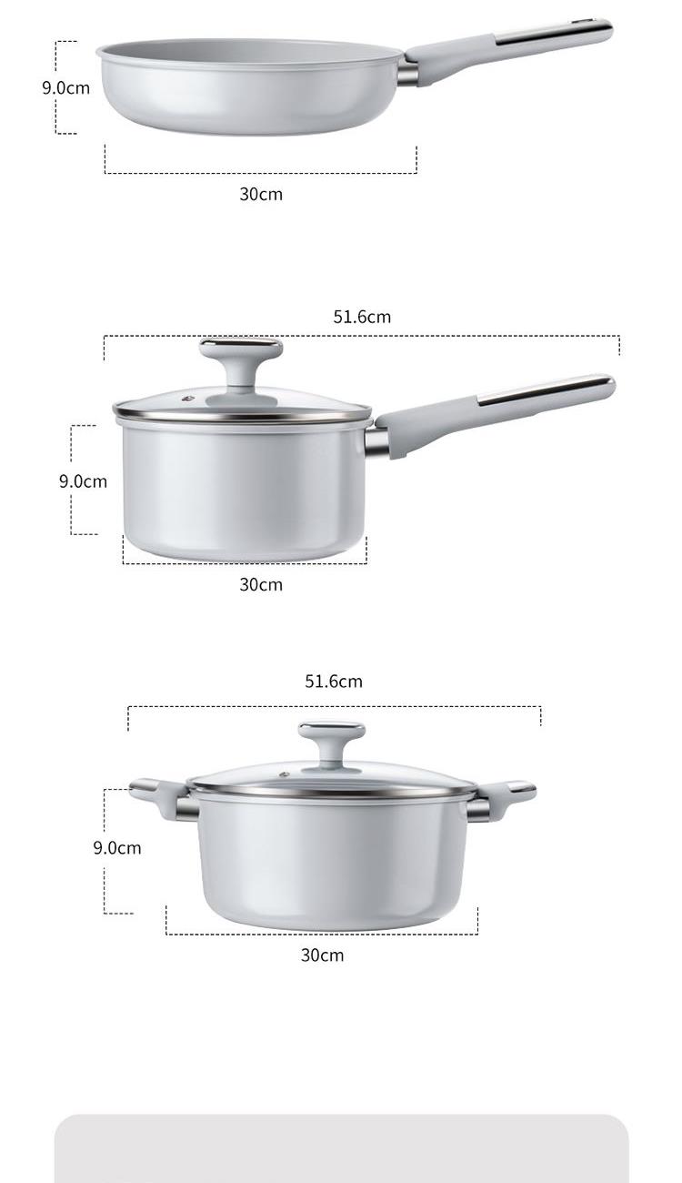 產(chǎn)品配置:30cm炒鍋、24cm湯鍋、24cm煎鍋 、18cm奶鍋