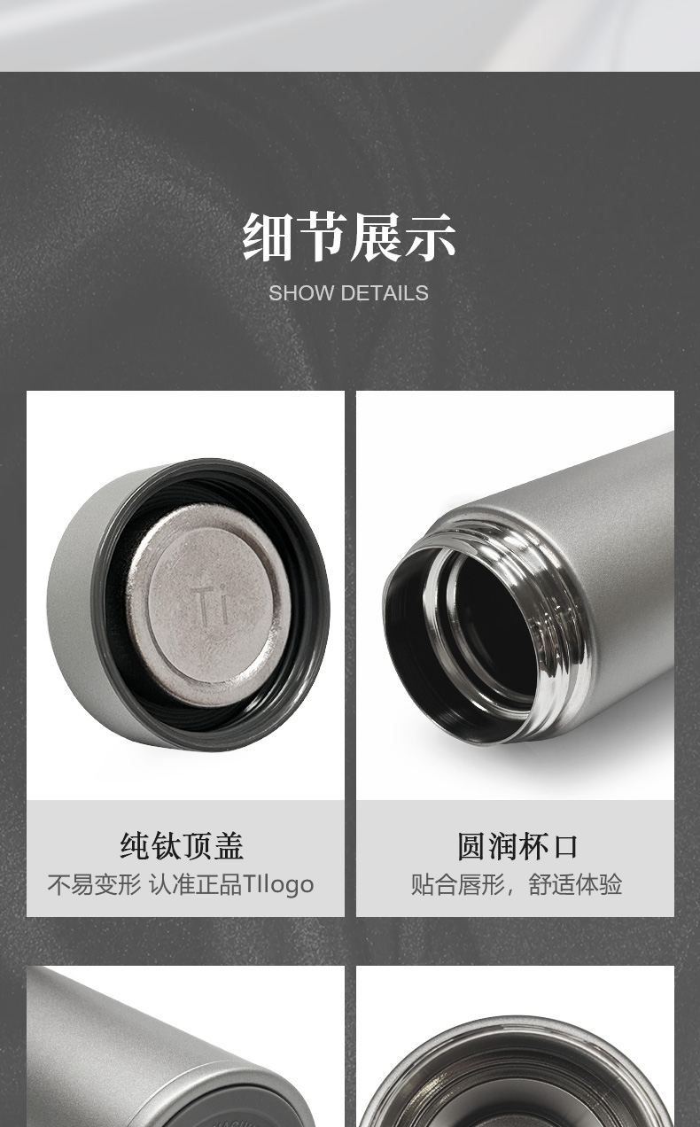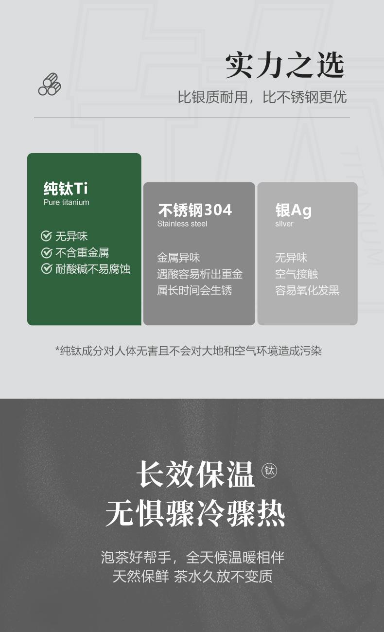 材 質(zhì):純鈦 規(guī) 格:205mm 容 量:480ml 裝 箱 數(shù):20pcs/箱 包裝尺寸:110*260*85mm