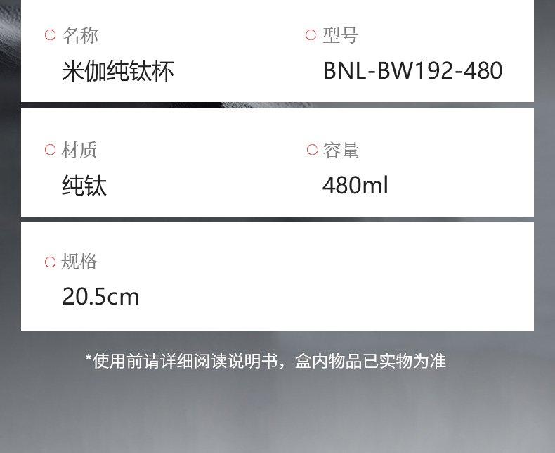巴米樂米伽純鈦杯BNL-BW192-480 巴米樂米伽純鈦杯BNL-BW192-480
