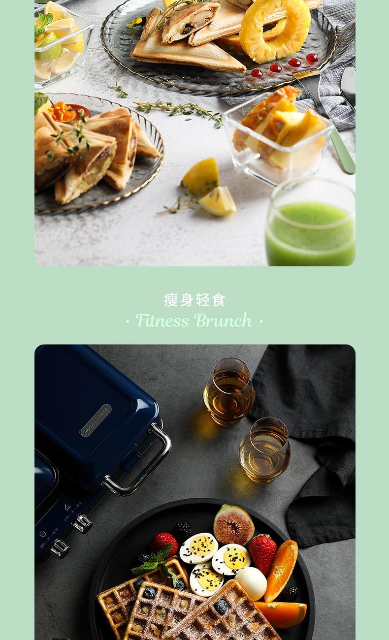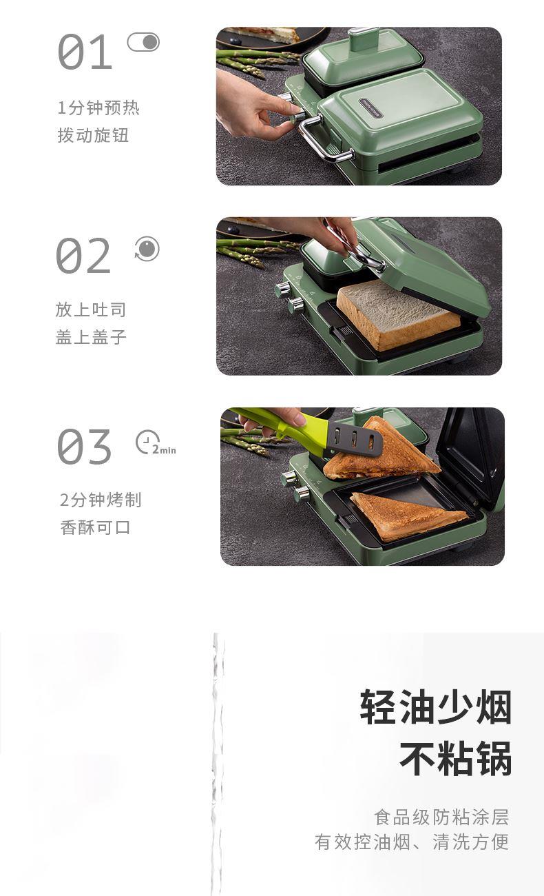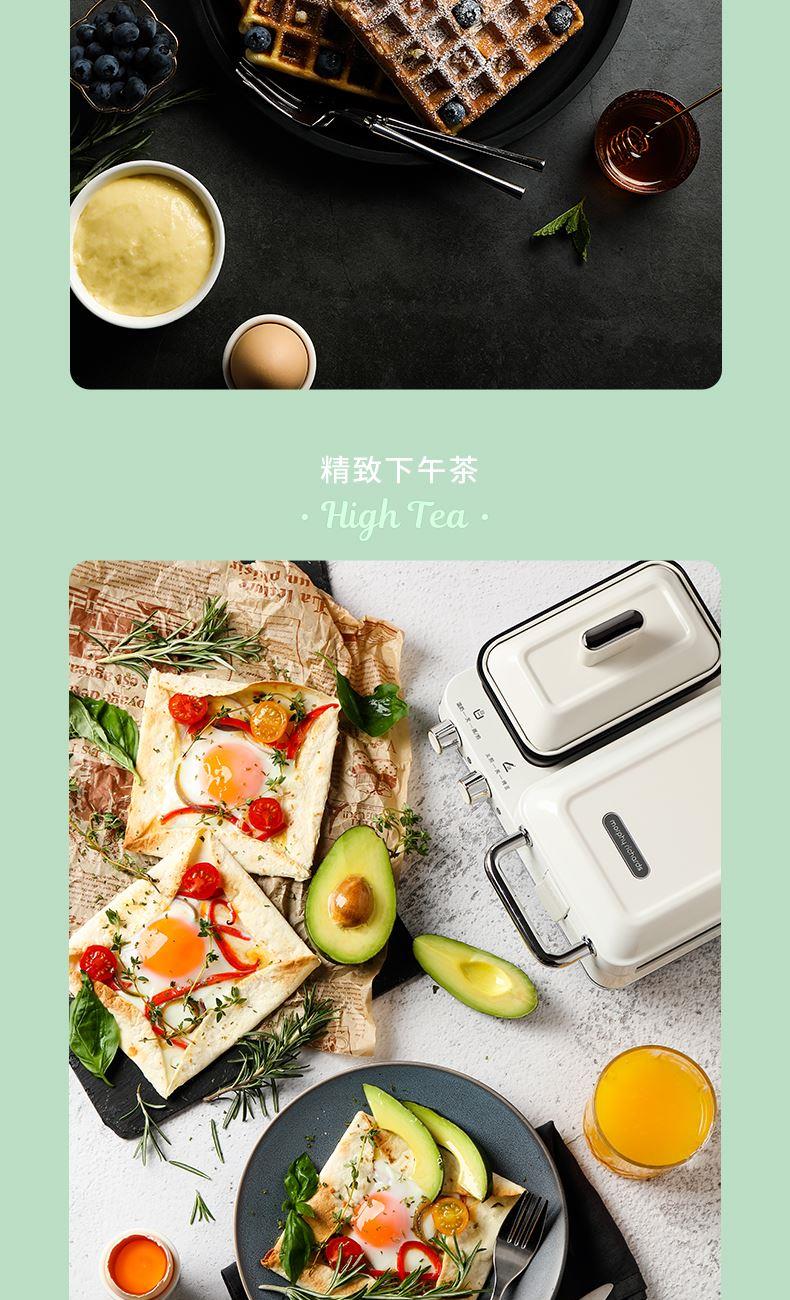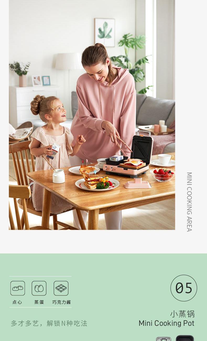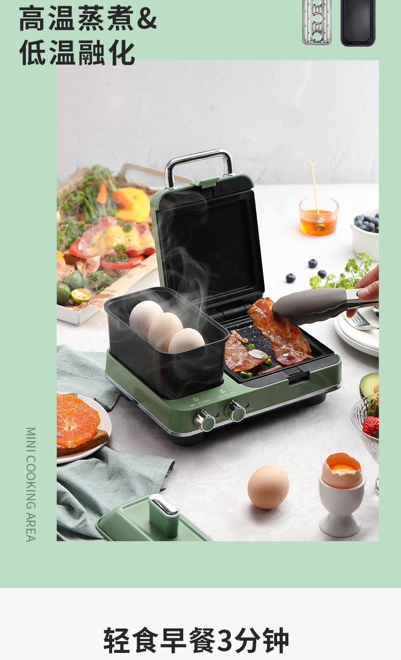 輕食早餐:具備三文治、華夫餅、蒸、煎、溫奶等多種功能 蒸煎烤多種功能配件選擇:采用壓鑄鋁底材,提高加熱效率,受熱均勻、可拆易換、清洗方便!