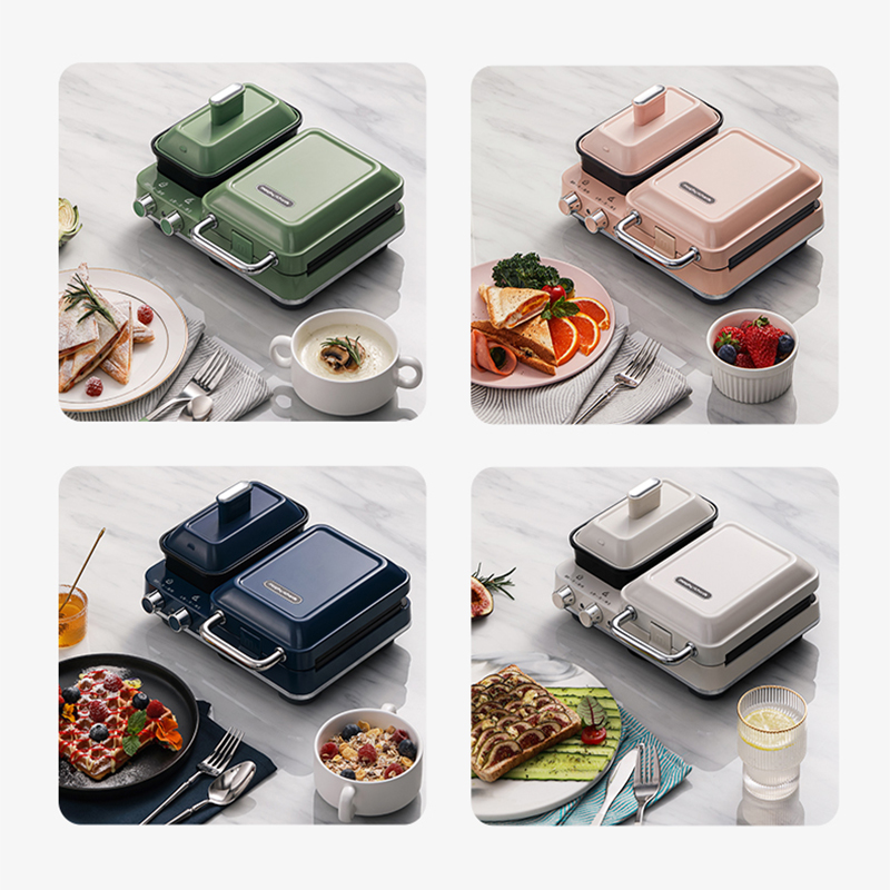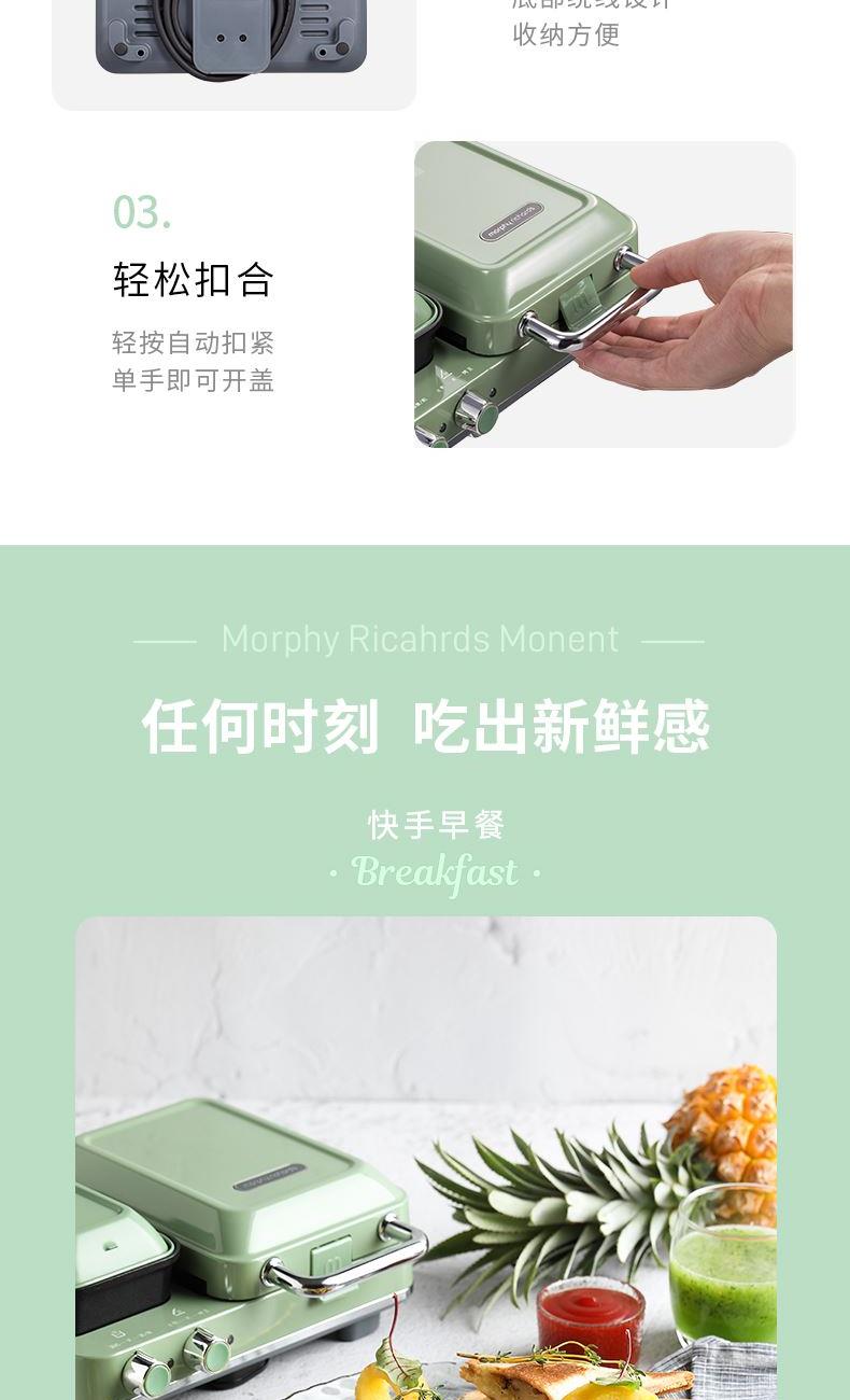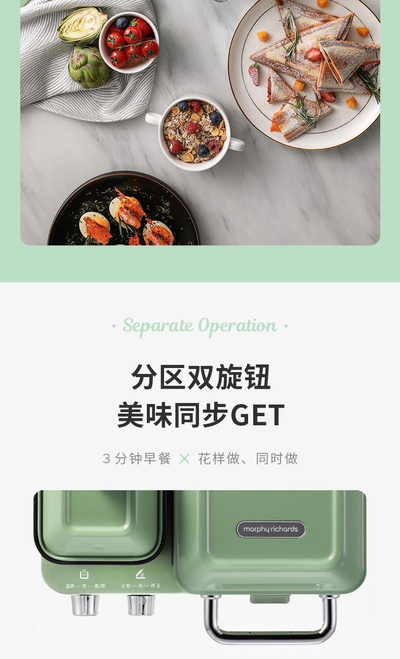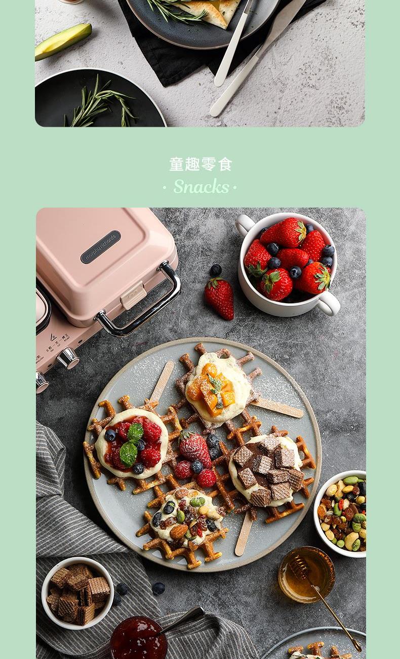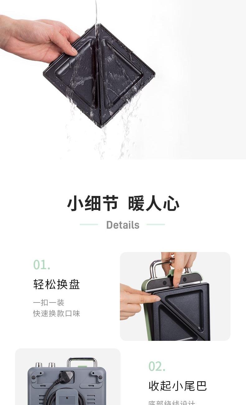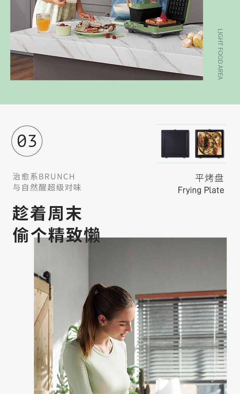輕食早餐:具備三文治、華夫餅、蒸、煎、溫奶等多種功能 蒸煎烤多種功能配件選擇:采用壓鑄鋁底材,提高加熱效率,受熱均勻、可拆易換、清洗方便!