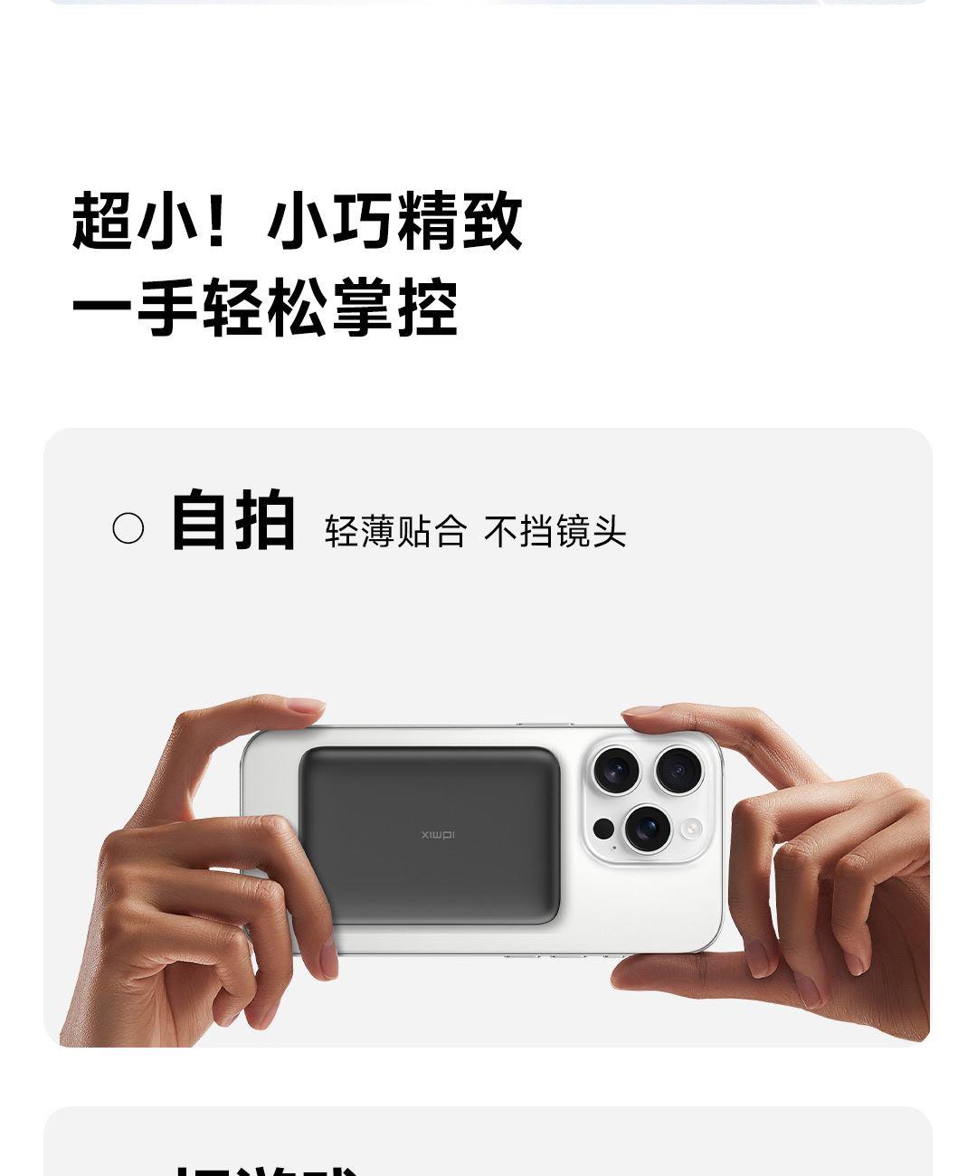 內(nèi)置5000mAh 聚合物電芯,輕薄迷你小巧,人體工學設(shè)計,單手輕松持握