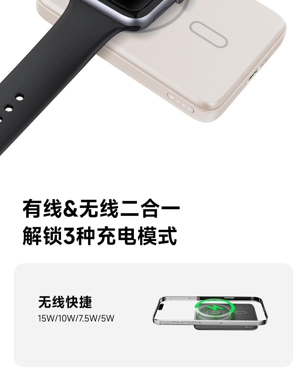 無線充輸出功率可達15W,支持蘋果手機,耳機,手表充電