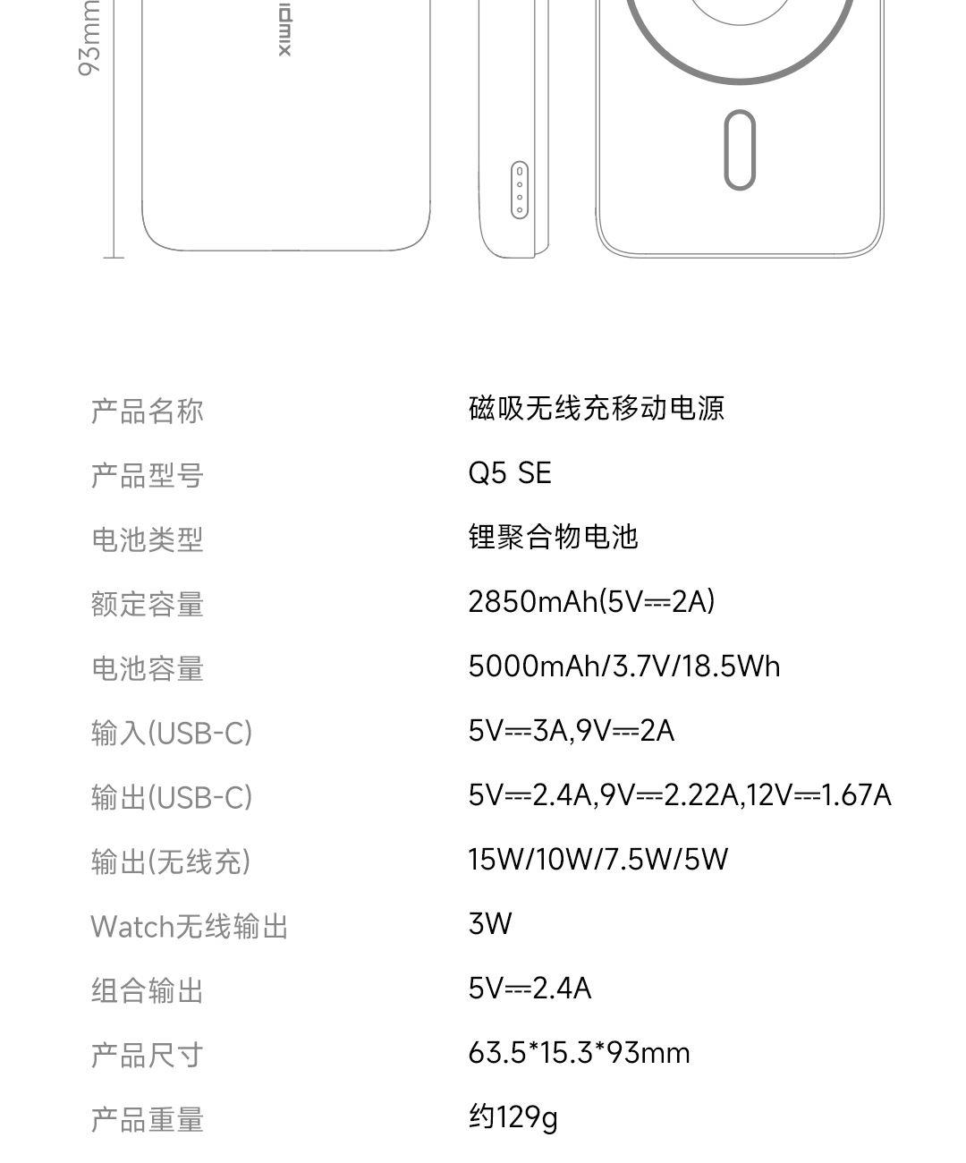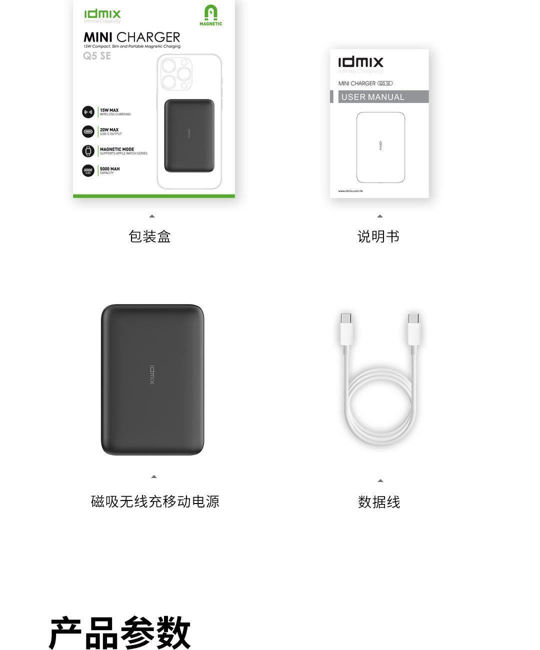 IDMIX迷你便攜磁吸無線充電寶Q5SE