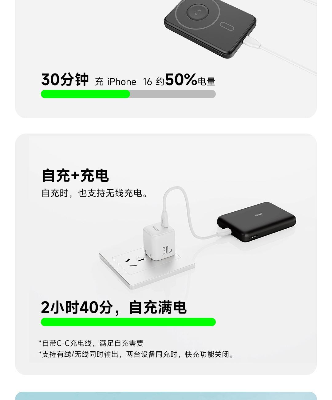 Type-C輸出支持PD20W,Type-C輸入可達18W功率,雙向快充,充電放電更省時,