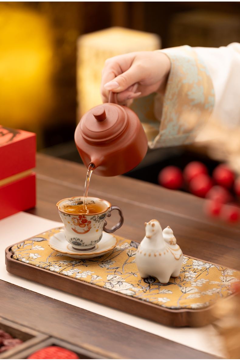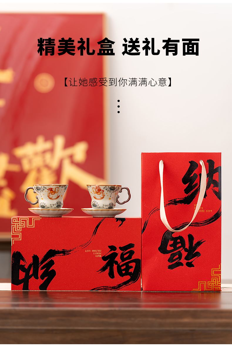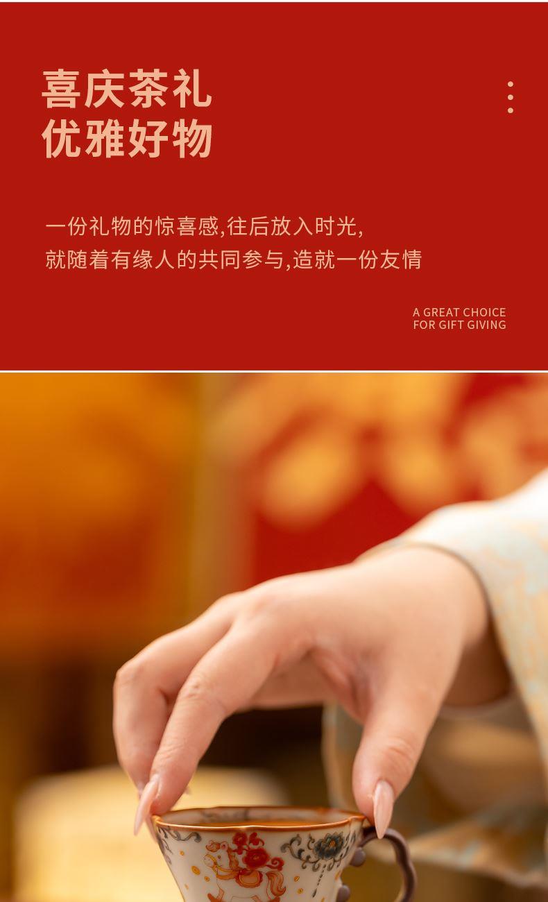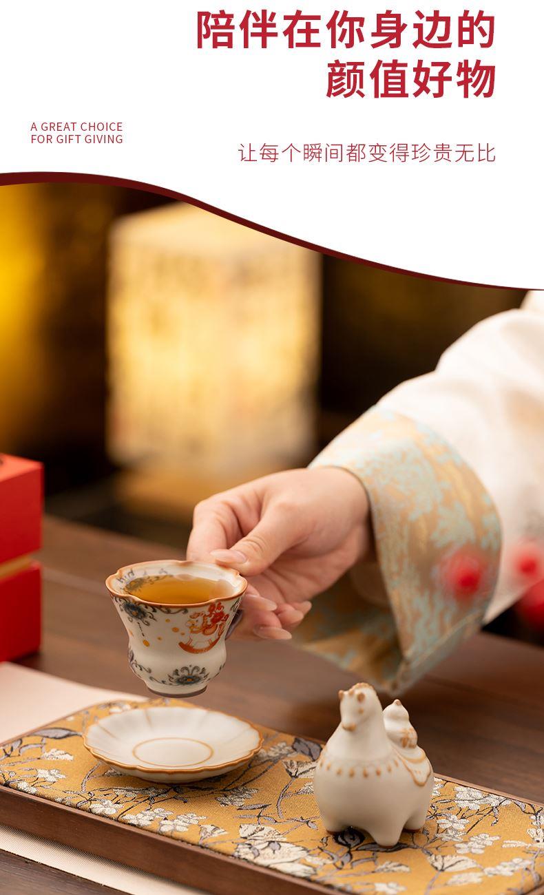 配 制:1杯 1碟 1擺件 1禮盒 手提袋 材質(zhì):汝黃瓷 規(guī)格:杯子 6*9cm 碟子直徑9.3cm高1.8cm 擺件9.3*7cm 容量:70ml 推薦說明:馬年開門紅禮品,馬上有錢,馬到成功杯子擺件套裝,馬背上葫蘆造型,寓意福祿。亞黃汝瓷,瑪瑙入釉,蟬翼開片,家有千財(cái)萬貫,不如汝窯一片。技術(shù)新品。畫面堆料技術(shù),富有立體浮雕質(zhì)感,真實(shí)感強(qiáng)。杯身開片,可養(yǎng)瓷。