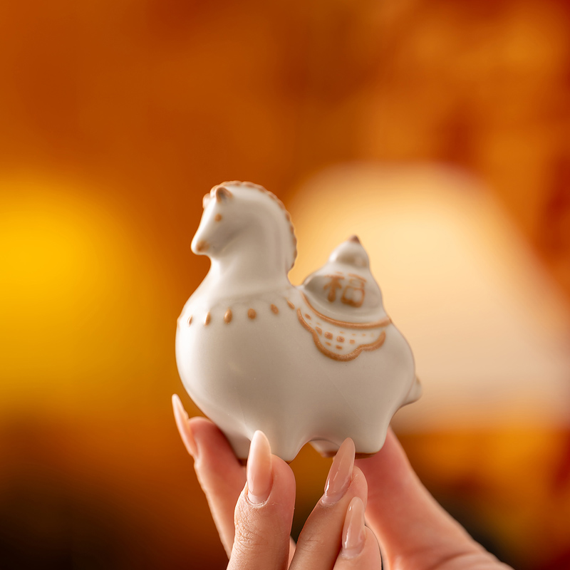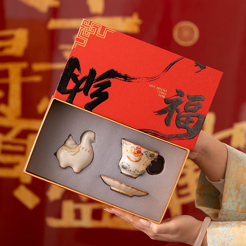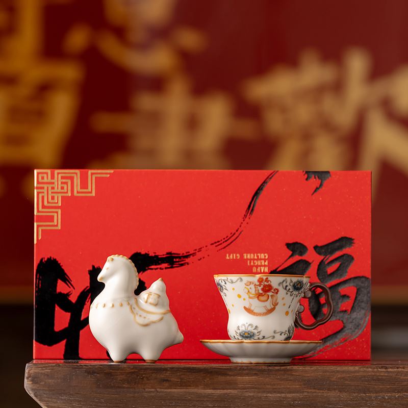 鵬翼馬年開門紅納福馬上有錢杯碟擺件 禮品已成功加入PPT!