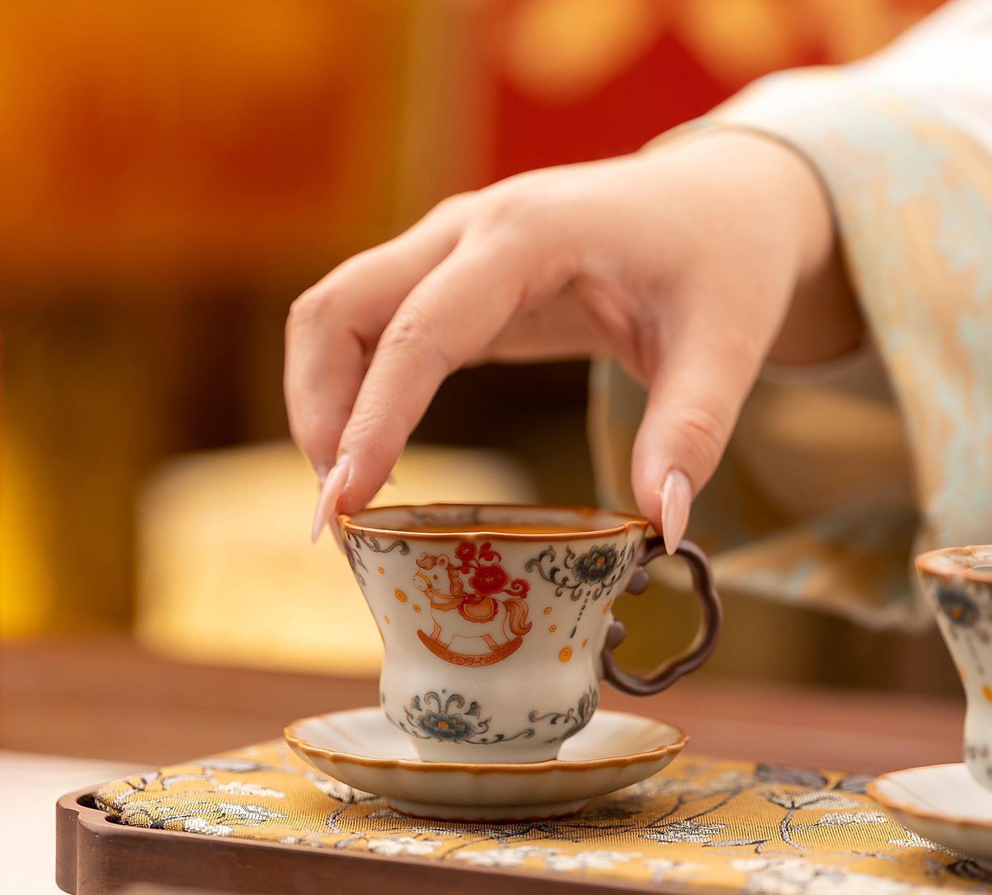 鵬翼馬年開門紅納福馬上有錢杯碟擺件 鵬翼馬年開門紅納福馬上有錢杯碟擺件